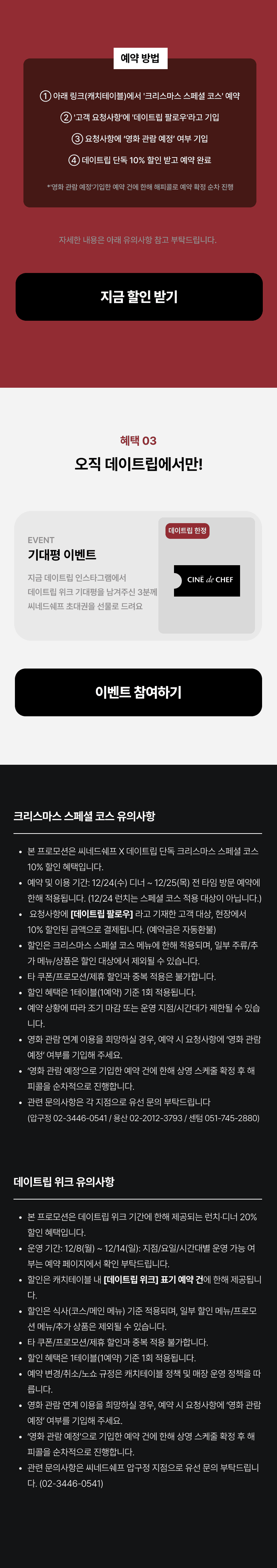 - 런치코스 : 90,000원 (정가:100,000원) - 디너코스 : 135,000원(정가 : 150,000원)
